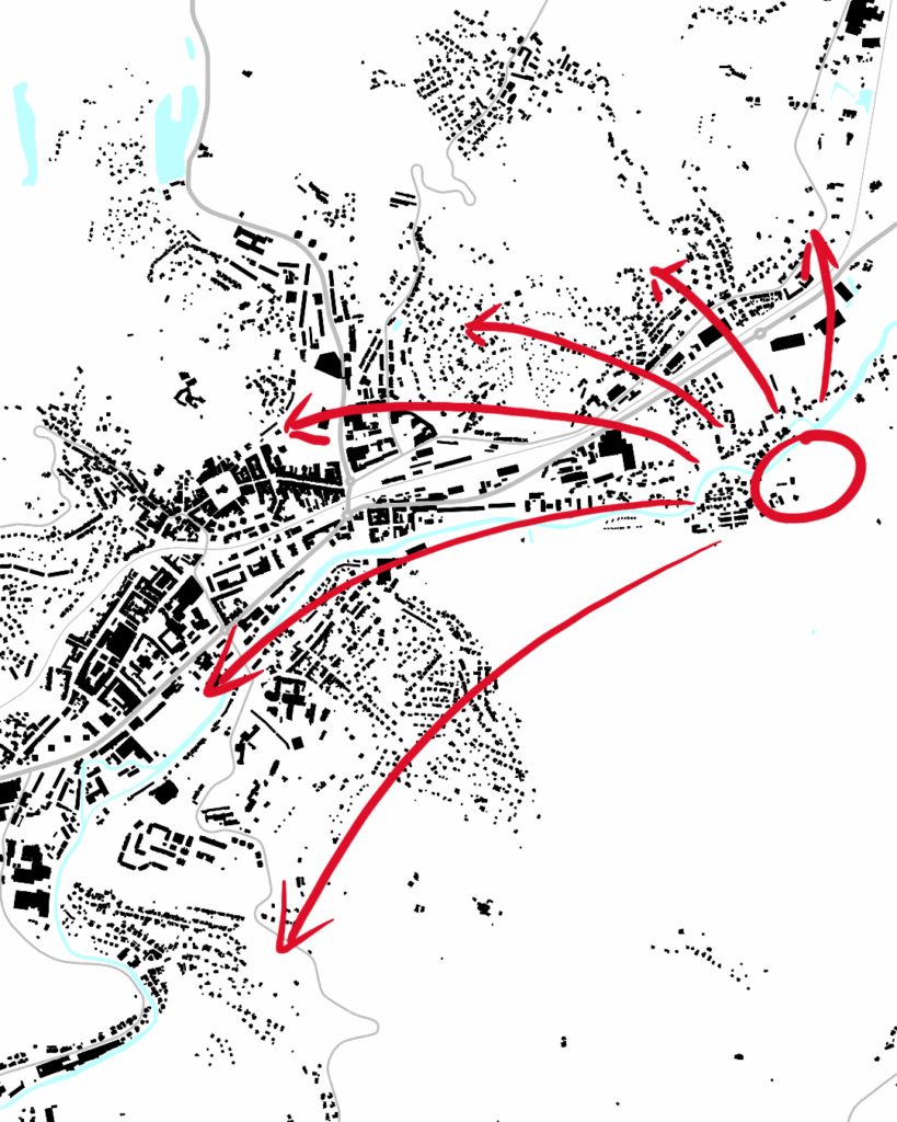 The first step was to resist the urge to draw. Instead, we dove into the city’s DNA, exploring the contrasts that define it: a fortress and a gateway; a history of industry and a future of well-being; a hidden treasure of healing water beneath a town in need of a new identity.